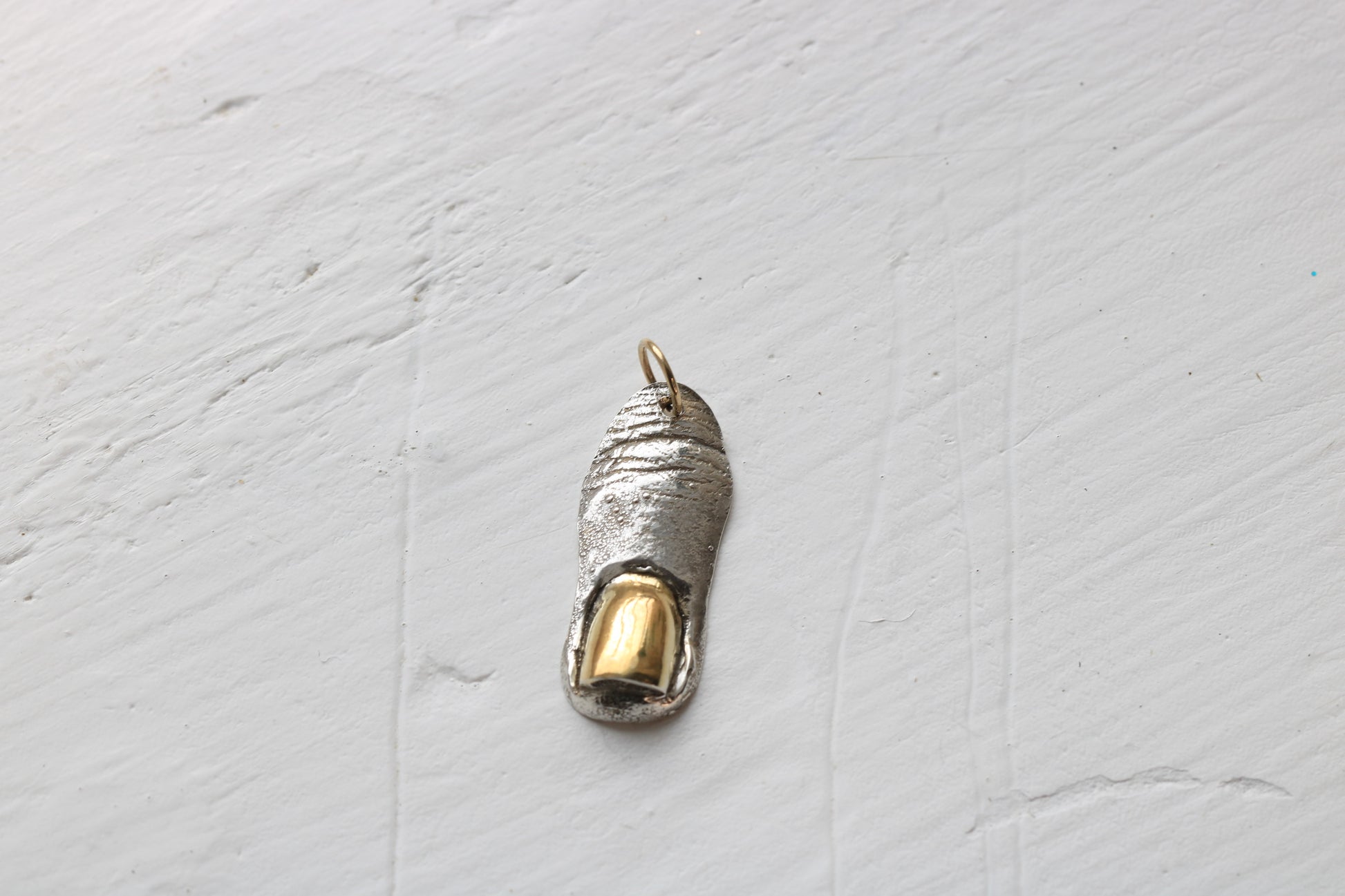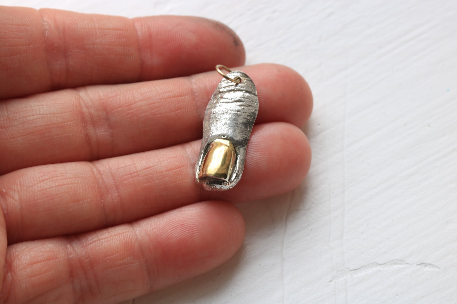 Body cast sterling silver pinky finger with a 14k yellow gold plated nail.