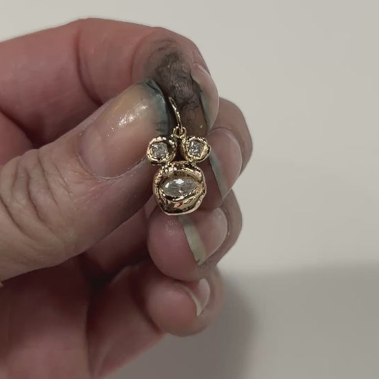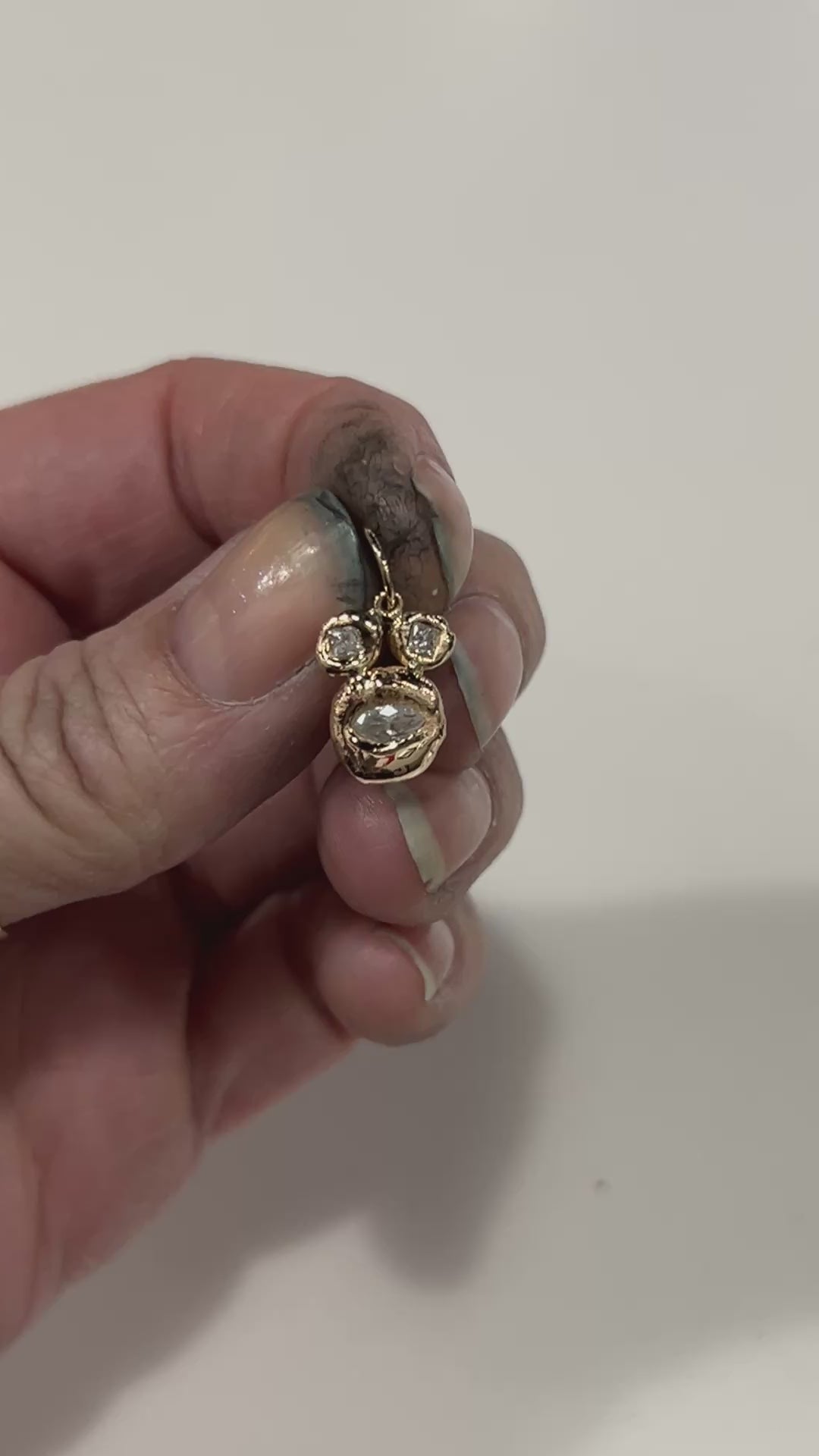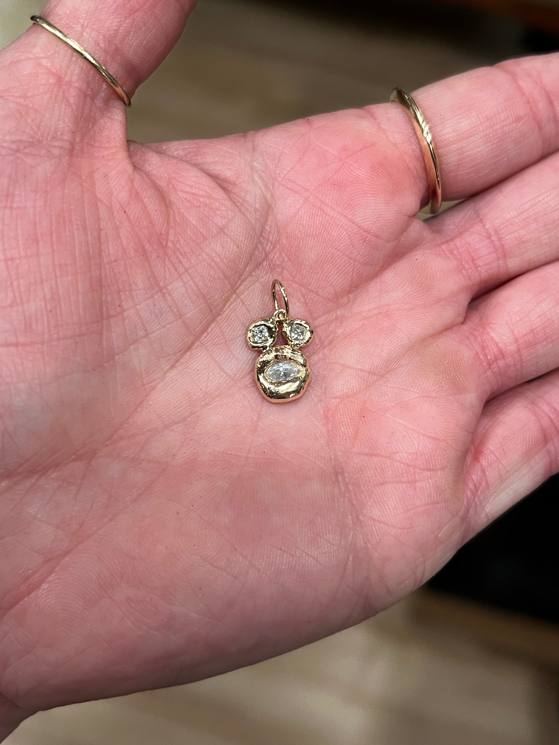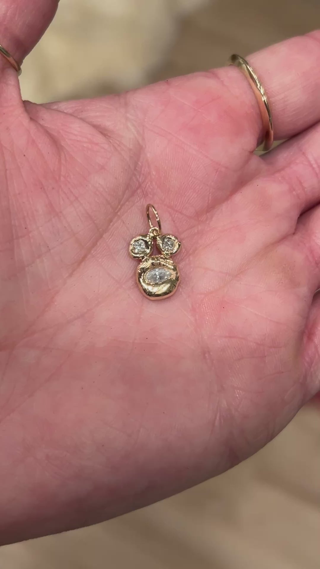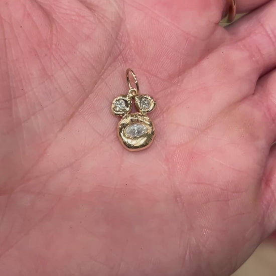Frog blob!! 14k yellow gold with a reclaimed natural .23 ct marquise diamond and two lab diamond princess cut eyeballs. Approx 2g of gold. Comes on a 5mm to fit existing chains.