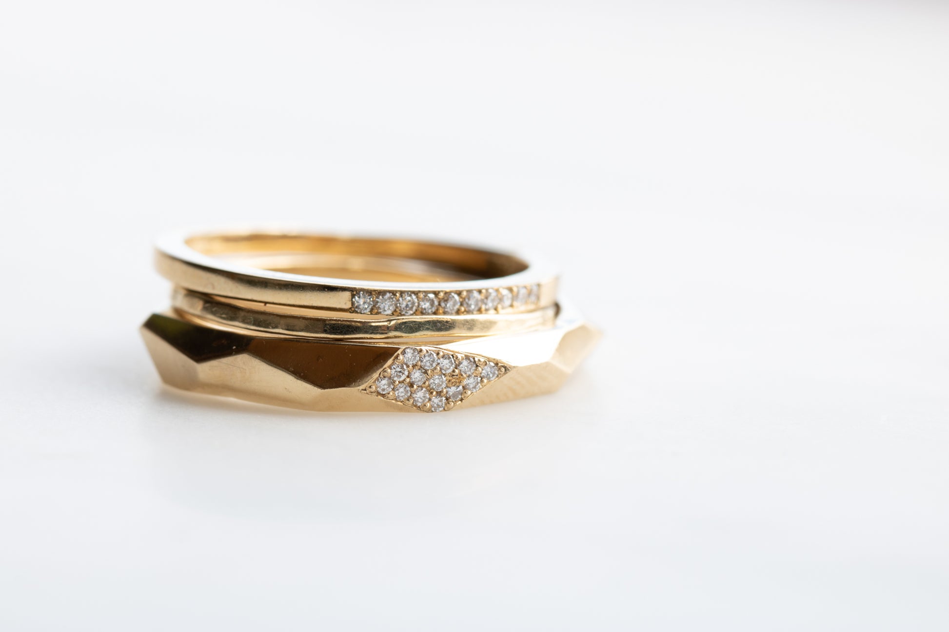 14k gold band set with 1mm lab grown white diamonds. (email to request custom size)