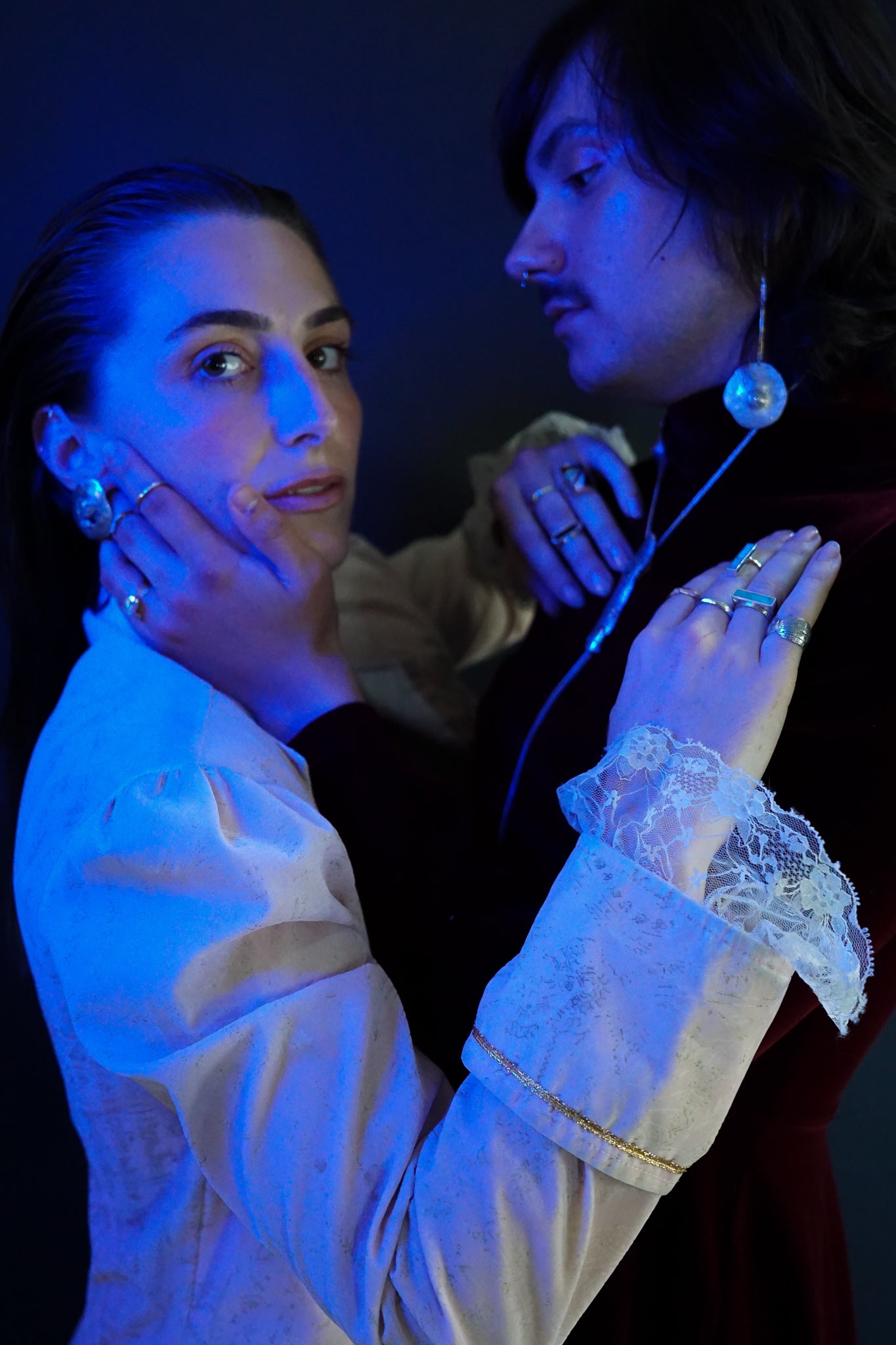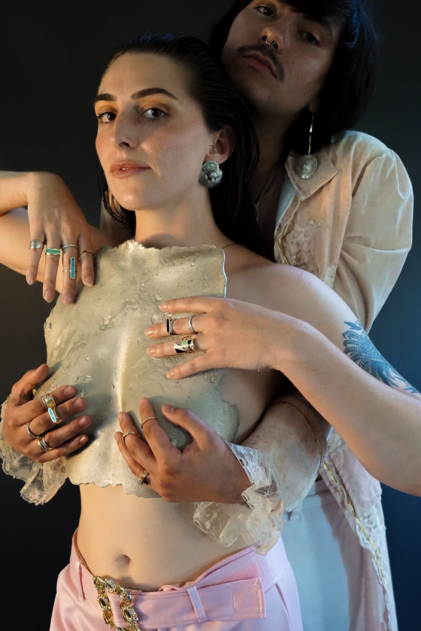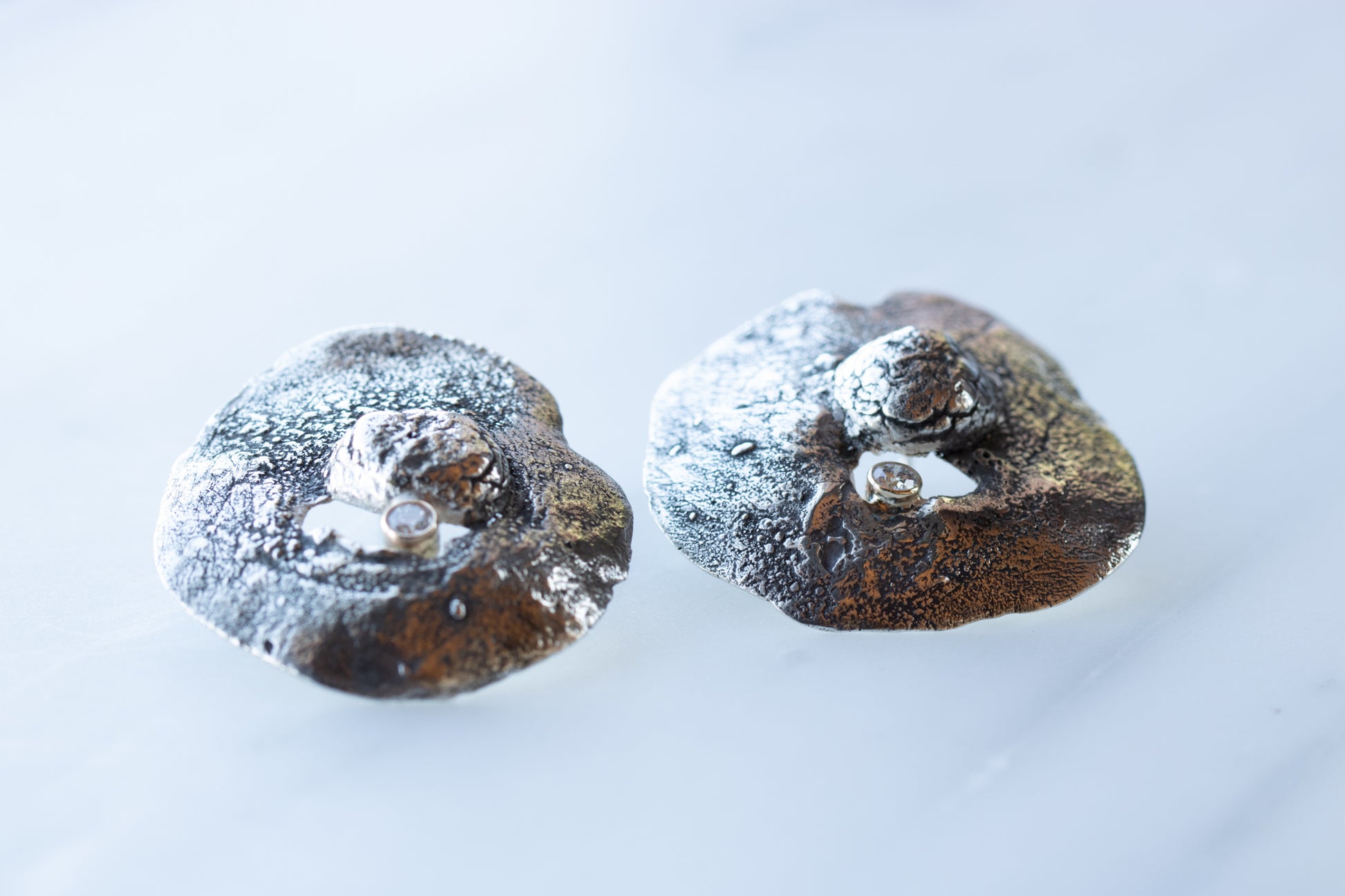 Sterling silver cast nipple studs with two .1ct lab grown diamonds set in 14k gold.