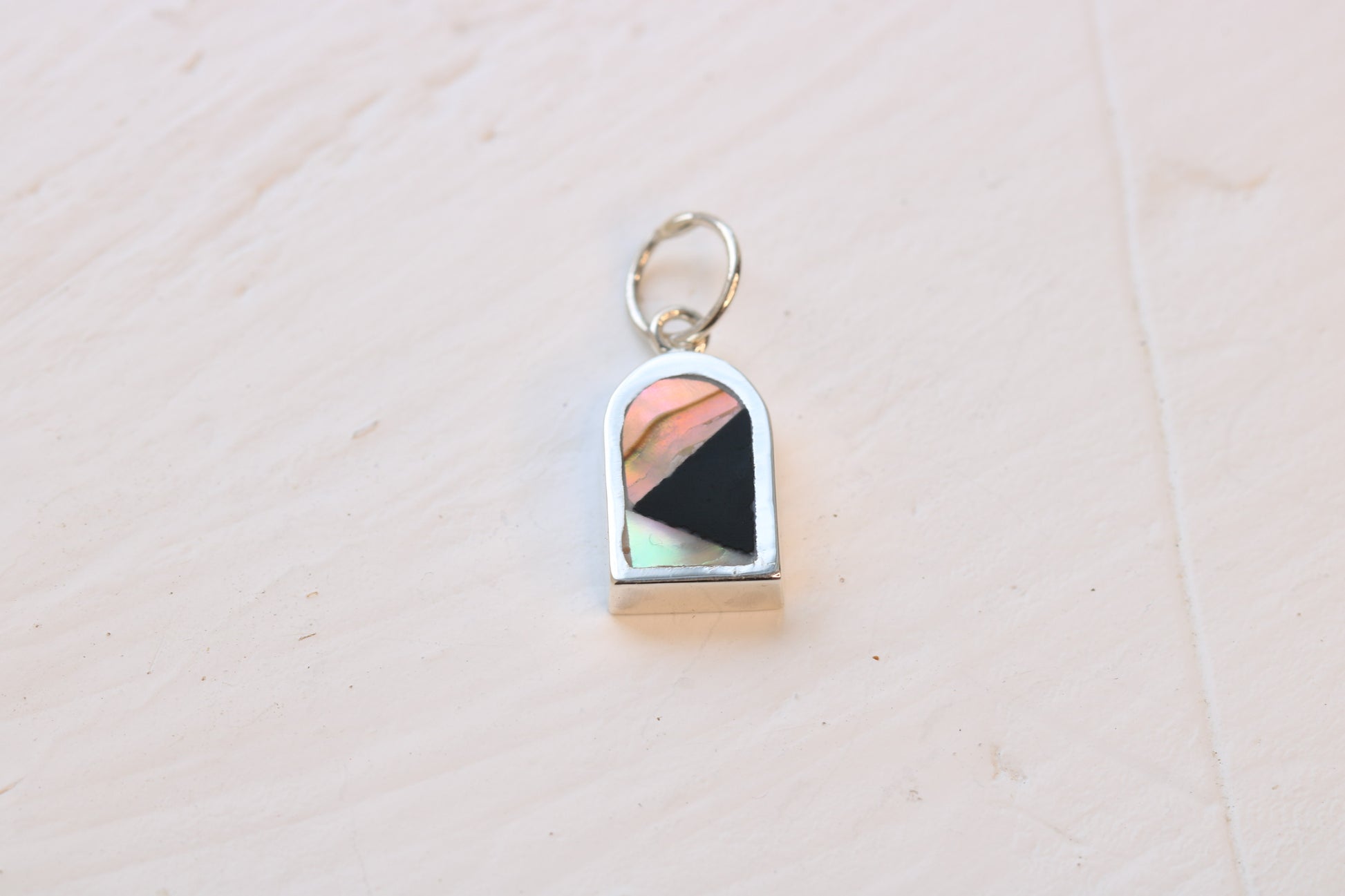 Sterling Silver charm inlaid with 1970's abalone and black petrified wood!